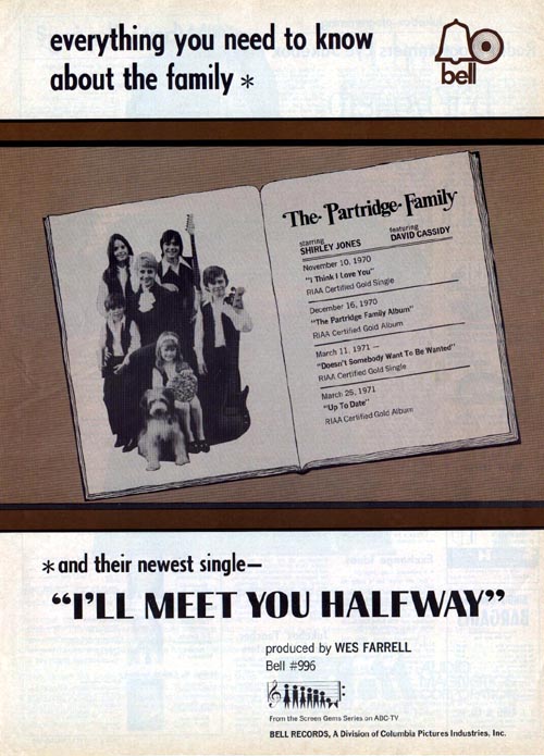 single for The Partridge Family. Notice the ad indicates the dates that the