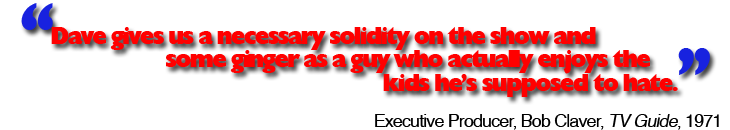 DM: Well, I'm not talking about making an impact or other people's opinions of what I do. I'm talking about my opinion of what I've done. If you'd like to learn more about Dave's autobiography, "Reuben On Wry: The Memoirs of Dave Madden," visit the website at: http://www.reubenkincaidbook.com Or, you can order directly from amazon.com by clicking here: www.cmongethappy.com would like to give their heartfelt thanks to the following passengers for their contributions to this interview: Dave Madden, Sandra Madden, Mischa Hof. While we make a pitstop and refuel the bus, stay tuned for our continuing series of interviews with cast and crew members from The Partridge Family!