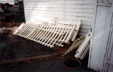 You'll remember that the Partridge's front lawn was lined with a white picket fence (see the first page of the tour). A fence was put back up for the ABC movie, then taken back down and discarded behind the garage.